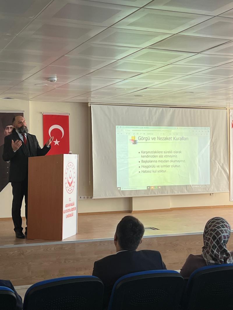 Kurumlar arası iş birliğini güçlendirmeyi ve bilgi paylaşımını artırmayı hedefleyen etkinlik, Aile ve Sosyal Hizmetler İl Müdürlüğü Konferans Salonu’nda iki ayrı oturum şeklinde yapıldı. Oturumlara; İl Müdürü Mahmut Çetinkaya, İl Müdür Yardımcısı Zehra Ulutaş, Ardahan Sosyal Hizmet Merkezi Müdürü Bekir Tancı, Göle Sosyal Hizmet Merkezi Müdürü Canan Ayaz, Huzurevi Yaşlı Bakım ve Rehabilitasyon Merkezi Müdürü Merve Deniz, Kuruluş Müdürü Aysel Şen ile çok sayıda kurum çalışanı katıldı. Vural, sunumunda adab-ı muaşeretin felsefi kökenleri, tarihsel arka planı ve ontolojik yönleri üzerine değerlendirmelerde bulundu. Ayrıca, nezaketin toplumsal yaşamda, bireyler arası ilişkilerde ve kamu alanında nasıl yansımalar bulduğunu örneklerle anlattı. Özellikle kamu kurumlarında protokol kurallarının doğru uygulanmasının, kurumsal temsil açısından önem taşıdığını vurguladı.
